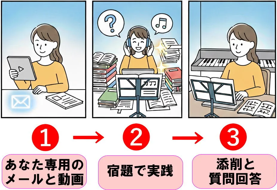 - 宿題の添削結果と、正式受講案内をメールと動画でお送りします